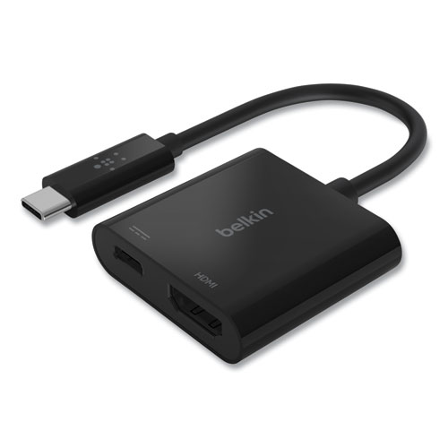 The USB-C® to HDMI® + Charge Adapter connects to your laptop or tablet via USB-C port, giving you both an HDMI port for video display and a USB-C port for power. Its plug-and-play design works universally with Mac and Windows laptops and other USB-C devices. It offers portable flexibility that’s great for classrooms, conferences, and trade shows.