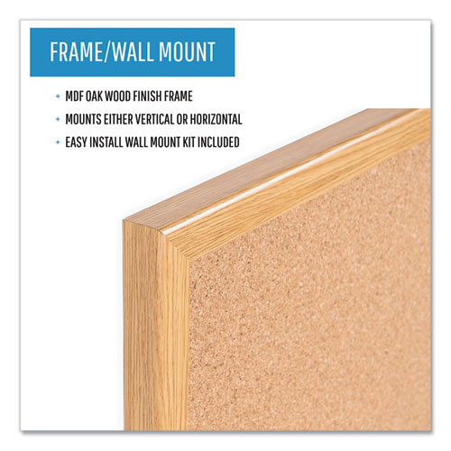 The MasterVision™ Maya Cork Bulletin Board is an economic solution that delivers effective posting and versatility for office and facility communications. Designed for commercial applications, the Maya bulletin board’s self-healing surface never shows pin holes and is made from renewable cork; making it both durable and resilient. Framed in sturdy wood MDF with oak finish, it can be positioned either vertically or horizontally, offering versatility when reconfiguring a workplace or where wall space is limited.