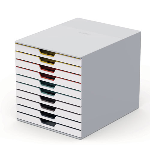 The VARICOLOR® stackable drawer box from DURABLE® is a versatile storage solution that streamlines your organization and productivity. The color-coded drawers keep all your essentials neatly organized, whether it’s office papers, files, craft supplies, cosmetics, or jewelry. Customize your drawers effortlessly with the included transparent label holders and printable inserts for quick identification of contents. Maintaining a clutter-free workspace is effortless – simply place it directly on your desktop to ensure essential items are always within reach. For those seeking even greater space optimization, stack multiple units together to create a vertical storage solution. Alternatively, seamlessly integrate them into standard office storage cabinets, sideboards, and bookcases for a streamlined and organized workspace. Crafted with premium, long-lasting acrylic. This organizer offers a smooth and silent drawer experience, with built-in stops to prevent drawers from being pulled out too far and spilling their contents. Skid-proof feet provide stability and protection, preventing slips and scratches on your desktop. VARICOLOR is the perfect solution for a wide range of environments, ideal for organizing supplies in offices, schools, restaurants, hotel front desks, retail stores, banks, hospitals, maintenance storage areas, legal offices, senior living homes, warehouses, manufacturing, industrial settings, and even at home.