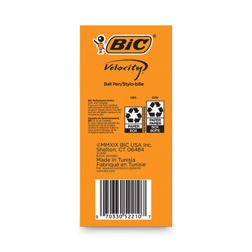 Product Details** Global Product Type Ballpoint Pens Pen Style Retractable Pen Tip Type Conical Pen Point Size Type Medium Color Family Black Erasable Ink No Refillable Yes Pen Sub-Brand & Product Family Velocity® Easy Glide® Pen Type Ballpoint Pen Pen Point Size 1 mm Pen Ink Color(s) Black Pen Barrel Color(s) Black Airplane-Safe Ink Yes Low-Viscosity Ink No Pen Grip Type Contoured Rubber Visible Ink Supply No Pocket Clip Indicator Yes Product Biodegradability Indicator N Product Biodegradability in Days 0 Product Compostability Indicator N Pre-Consumer Recycled Content Percent 0% Post-Consumer Recycled Content Percent 0% Total Recycled Content Percent 0% Special Features Value Pack—Stock up and save! Country Of Origin FR Carton Weight 13 lbs. Carton Pack Quantity 12 PK Pack Quantity 36 EA UPC 070330522107 UNSPSC 44121704 Shipping Weight & Item Dimensions Weight 0.932 lbs. Length 6 in Height 2.75 in Width 3.75 in