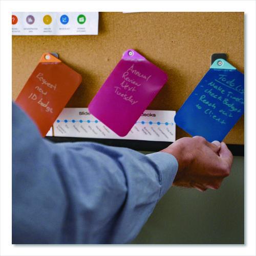 • Thin, flexible and reusable notes that stick to anything magnetic, including filing cabinets, metal frames, refridgerators, Kanban boards and more.