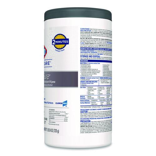 Product Details** Global Product Type Cleaner/Detergent Wet Wipes Towel/Wipe Type Cleaning/Disinfecting Wipes Material(s) Nonwoven Fiber Number of Plies 1 Number of Towels/Wipes Per Container 150 Scent Scented Color(s) White Applicable Material Aluminum,Baked Enamel,Brass,Chrome,Copper,Corian,Finished Wood,Formica,Galvanized Steel,Glass,Glazed Porcelain,Laminate,Linoleum,Marble,Metal,Naugahyde,Painted Metal,Painted Wood,Plastic,Plastic Laminate,Plexiglass,Porcelain Enamel,Rubber,Sealed Fiberglass,Sealed Granite,Sealed Wood,Silver,Stainless Steel,Synthetic Marble,Treated Wood,Vinyl Tile,Wood Chemical Compound Ethanolamine,Quaternary Ammonium Compounds, C12-14-Alkyl[(Ethylphenyl )Methyl]Dimethyl, Chlorides,Quaternary Ammonium Compounds, C12-18-Alkyl[(Ethylphenyl )Methyl]Dimethyl, Chlorides Dirt Types Bacteria,Fungi,Viruses Length 5″ Width 6″ Product Packaging Canister Application Hospitals,Medical Facilities,Nursing Homes Product Biodegradability Indicator N Product Biodegradability in Days 0 Product Compostability Indicator N Compliance Standards EPA Reg. No. 67619-25,EPA List N Pre-Consumer Recycled Content Percent 0% Post-Consumer Recycled Content Percent 0% Total Recycled Content Percent 0% Country Of Origin US Carton Weight 15 lbs. Carton Pack Quantity 6 EA Pack Quantity 0 UPC 044600317588 UNSPSC 47131502 Shipping Weight & Item Dimensions Weight 1.728 lbs. Length 8.44 in Height 4.25 in Width 4.25 in