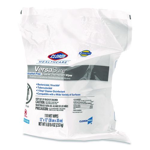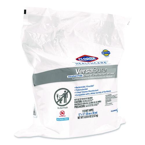 Clorox Healthcare VersaSure Cleaner Disinfectant Wipes kill over 40 pathogens quickly on a broad range of surfaces. These strong and durable clothlike wipes are your alcohol free solution to cleaning and disinfecting. VersaSure wipes are EPA registered to kill pathogens on hard surfaces in as fast as 30 seconds for most bacteria and viruses, including mumps, measles, MRSA and tuberculosis. These one step disinfecting wipes meet EPA efficacy testing requirements for hospital disinfection, making them great for daily use in your healthcare facility. Designed for patient and staff comfort, the alcohol free quat formula is made with no harsh chemical odors, fumes or added fragrances. The nonwoven wipe does not leave lint on surfaces, and the larger wipe covers more surface area with less effort. Intended for use in healthcare settings.