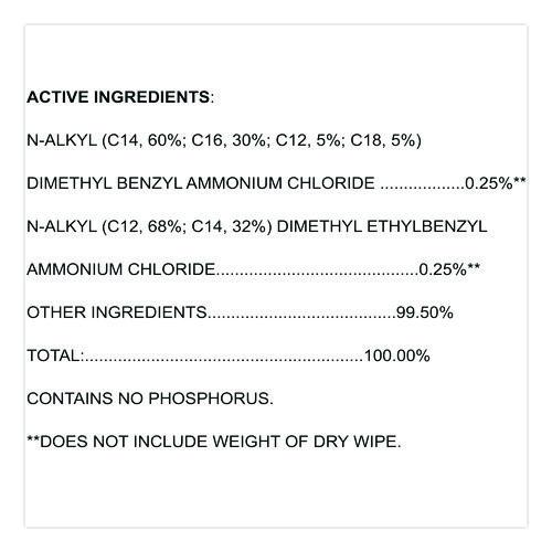 Product Details** Global Product Type Cleaner/Detergent Wet Wipes Towel/Wipe Type Cleaning/Disinfecting Wipes Material(s) Nonwoven Fiber Number of Plies 1 Number of Towels/Wipes Per Container 110 Scent Scented Color(s) White Applicable Material Aluminum,Baked Enamel,Brass,Chrome,Copper,Corian,Finished Wood,Formica,Galvanized Steel,Glass,Glazed Porcelain,Laminate,Linoleum,Marble,Metal,Naugahyde,Painted Metal,Painted Wood,Plastic,Plastic Laminate,Plexiglass,Porcelain Enamel,Rubber,Sealed Fiberglass,Sealed Granite,Sealed Wood,Silver,Stainless Steel,Synthetic Marble,Treated Wood,Vinyl Tile,Wood Chemical Compound Ethanolamine,Quaternary Ammonium Compounds, C12-14-Alkyl[(Ethylphenyl )Methyl]Dimethyl, Chlorides,Quaternary Ammonium Compounds, C12-18-Alkyl[(Ethylphenyl )Methyl]Dimethyl, Chlorides Dirt Types Bacteria,Fungi,Viruses Length 10″ Width 12″ Product Packaging Refill Pouch Application Hospitals,Medical Facilities,Nursing Homes Product Biodegradability Indicator N Product Biodegradability in Days 0 Product Compostability Indicator N Compliance Standards EPA Reg. No. 67619-37,EPA List N Pre-Consumer Recycled Content Percent 0% Post-Consumer Recycled Content Percent 0% Total Recycled Content Percent 0% Special Features 12″ x 10″ Wipes–Large size wipes are great for cleaning large areas. Country Of Origin US Carton Weight 13 lbs. Carton Pack Quantity 2 EA Pack Quantity 0 UPC 044600317618 UNSPSC 47131502 Shipping Weight & Item Dimensions Weight 6.167 lbs. Length 7.5 in Height 7 in Width 7.5 in