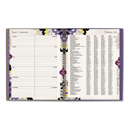 The classic medallion design is given a twist by pairing it with these vibrant colors. Fun, die-cut durable poly cover is great for both work and home. Monthly tabs for reference and quick navigation. Block format: open scheduling. Weekly: one week per two-page spread. Monthly: one month per two-page spread with notes space. Past and future months reference on each monthly page.