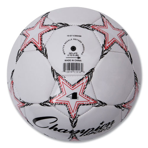 Product Details** Global Product Type Soccer Balls Regulation Size No. 4 Size Color Family White Diameter 8″ to 8.25″ Material(s) Polyurethane/Synthetic Rubber Color(s) White Product Biodegradability Indicator N Product Biodegradability in Days 0 Product Compostability Indicator N Pre-Consumer Recycled Content Percent 0% Post-Consumer Recycled Content Percent 0% Total Recycled Content Percent 0% Country Of Origin CN Carton Weight 20 lbs. Carton Pack Quantity 24 EA Pack Quantity 0 UPC 710858019160 UNSPSC 49161505 Shipping Weight & Item Dimensions Weight 0.83 lbs. Length 4 in Height 8.5 in Width 7 in