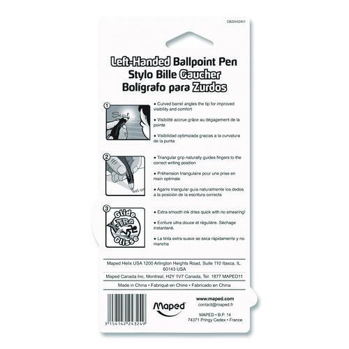 The first pen to offer left-handers more visibility as they write! The Visio Left-Handed Pen by Maped features a unique, curved barrel which angles the pen tip so left-handed users can easily see where they are writing without needing to ‘hook’ their wrist around. Comfortable, soft-touch triangular grip guides fingers into the correct position for a natural writing motion. Special quick-dry ink also helps against smearing when writing!