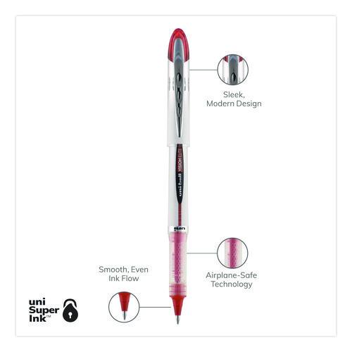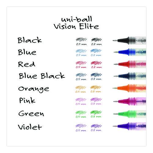 Create ideas as vividly as can be imagined with Vision Elite Rollerball Pens from uni-ball featuring a bend-resistant stainless steel tip and a tungsten carbide rollerball. Capped roller pens deliver smooth, intense lines with unparalleled definition – useful for note taking, list making, signing checks and legal documents, and even uniquely embellishing creative writing projects. Innovative uni Super Ink technology effectively entraps the gel ink into the paper, producing fraud, fade and water-resistant documents that resist check washing or bleaching. These Vision Elite pens have a special design that withstands cabin pressure variances without leaking, making them useful for travelers. Exclusive Uni-Flow Ink System ensures a consistent, delightfully fluid writing experience, and a translucent window ensures that you don’t run out of ink unexpectedly. Express your signature style with the sleek, modern design and elite performance of uni-ball’s Vision Elite Rollerball pen – no matter the altitude.