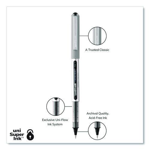 Product Details** Global Product Type Rollerball Pens Pen Style Stick Pen Tip Type Conical Pen Point Size Type Fine Color Family Black Erasable Ink No Refillable No Pen Sub-Brand & Product Family VISION Pen Type Rollerball Pen Pen Point Size 0.7 mm Pen Ink Color(s) Black Pen Barrel Color(s) Silver/Black/Clear Pen Cap Color(s) Gray/Silver Permanent/Washable Ink Permanent Archival-Quality Ink Yes Airplane-Safe Ink No Special Ink Properties Waterproof Pen Grip Type Smooth Visible Ink Supply Yes Pocket Clip Indicator Yes Product Biodegradability Indicator N Product Biodegradability in Days 0 Product Compostability Indicator N Pre-Consumer Recycled Content Percent 0% Post-Consumer Recycled Content Percent 0% Total Recycled Content Percent 0% Country Of Origin JP Carton Weight 6 lbs. Carton Pack Quantity 12 PK Pack Quantity 36 EA UPC 030246006573 UNSPSC 44121701 Shipping Weight & Item Dimensions Weight 0.9 lbs. Length 3.25 in Height 5.875 in Width 2.75 in