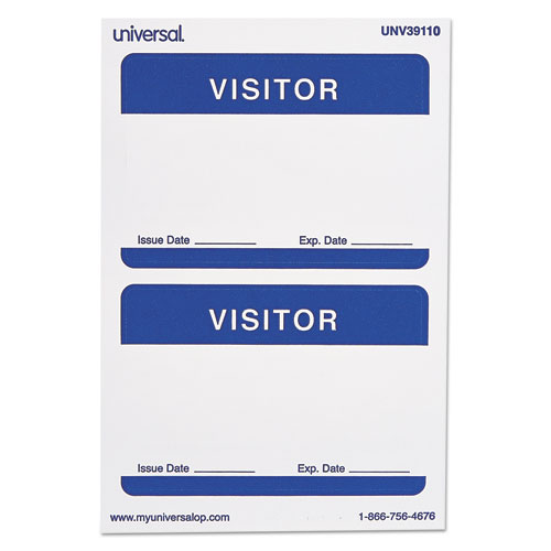Product Details** Global Product Type Self-Adhesive Name Tags Orientation Horizontal Name Badge Label Material(s) Paper Name Badge Label Color(s) White/Blue Printed Text Visitor Name Badge Label Length 2.25″ Name Badge Label Width 3.5″ Sheets Per Unit 50 Name Badges Per Sheet 2 Name Badges per Unit 100 Product Biodegradability in Days 0 Pre-Consumer Recycled Content Percent 0% Post-Consumer Recycled Content Percent 0% Total Recycled Content Percent 0% Footnote 1 Also printed with “Issue Date” and “Expiration Date”. Special Features Visitor Country Of Origin MX Carton Weight 7 lbs. Carton Pack Quantity 18 PK Pack Quantity 100 EA UPC 087547391105 UNSPSC 55121804 Shipping Weight & Item Dimensions Weight 0.345 lbs. Length 7.19 in Height 0.58 in Width 4.59 in Warranty Manufacturer’s limited one-year warranty.