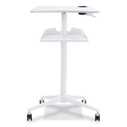 Product Details** Global Product Type Sit/Stand Single-Leg Workstations Worksurface Shape Rectangular Color Family White Pedestal Count 0 Keyboard/Mouse Platform Indicator Yes CPU Holder/Platform Indicator No Number of Drawers 0 Series Name Safco® VUM Worksurface/Base Color White Worksurface Material Laminate Worksurface Width 21.5″ Worksurface Depth 22.87″ Worksurface Thickness 1″ Edge Detail Profile Straight Base Material Steel Overall Width (Max) 30.75″ Overall Depth (Max) 22.28″ Overall Height (Min) 36.12″ Overall Height (Max) 48.25″ Weight Capacity 200 lb Number of Shelves 1 Caster/Glide/Wheel Four Casters (Two Locking) Weight (Fully Assembled) 34.6 lbs Product Biodegradability Indicator N Product Biodegradability in Days 0 Product Compostability Indicator N Pre-Consumer Recycled Content Percent 0% Post-Consumer Recycled Content Percent 0% Total Recycled Content Percent 0% Country Of Origin CN Carton Weight 49 lbs. Carton Pack Quantity 1 EA Pack Quantity 0 UPC 000000000000 UNSPSC 56101703 Shipping Weight & Item Dimensions Weight 48.5 lbs. Length 34.25 in Height 8.25 in Width 22.75 in Warranty Manufacturer’s limited lifetime warranty.