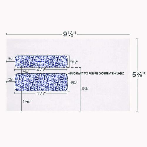 Product Details** Global Product Type Form Envelopes Seam Type Side Flap Type Commercial Trade Size #8-5/8 Security Tinted Yes Envelopes/Mailers Closure Gummed Color Family White Opening Open Side Exterior Material(s) Paper Stock Finish Wove Basis Weight 24 lb Bond Envelopes/Mailers Exterior Dimensions 5.63 x 9 Color(s) White Format/Border W-2 Tax-Form Format, No Border Preprinted Message Important Tax Return Document Enclosed Window Position Upper Left,Lower Left Window Size 3.5 x 1.13 Product Biodegradability Indicator N Product Biodegradability in Days 0 Product Compostability Indicator N Pre-Consumer Recycled Content Percent 0% Post-Consumer Recycled Content Percent 0% Total Recycled Content Percent 0% Footnote 1 Bond basis weight is measured in pounds per 500 uncut 17″ x 22″ sheets of paper Country Of Origin MX Carton Weight 7 lbs. Carton Pack Quantity 15 PK Pack Quantity 24 EA UPC 025932223198 UNSPSC 44121505 Shipping Weight & Item Dimensions Weight 1 lbs. Length 9.38 in Height 8.75 in Width 0.38 in
