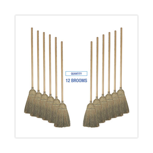 Natural colored, warehouse broom for heavy-duty sweeping. Constructed with stiff, natural, corn fiber bristles that are tightly secured to the handle with a heavy, metal wire. An ideal, sturdy broom for sweeping concrete and other rough floor surfaces. Solid wood handle that’s lacquered to prevent splintering and blistering. Four rows of stitching provide added strength and durability for lasting use.