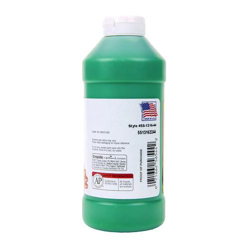 Product Details** Global Product Type Art Paints & Primers Paint Sub-Category Fingerpaint Intended Application Environment Interior Finish/Sheen Matte Color Family Green Number of Colors 1 Recommended Level of Ventilation None Color(s) Green Volume Capacity 16 oz Packaging Type Bottle Binder/Vehicle Ingredient(s) Starch Diluent/Solvent Ingredient(s) Water Pigment/Dye/Filler Ingredient(s) Food Coloring Application Method Fingers/Hands Washable/Removable Yes Product Biodegradability in Days 0 Compliance Standards ACMI AP Non-Toxic Certified,Conforms to ASTM D 4236 Pre-Consumer Recycled Content Percent 0% Post-Consumer Recycled Content Percent 0% Total Recycled Content Percent 0% Country Of Origin US Carton Weight 18 lbs. Carton Pack Quantity 12 EA Pack Quantity 0 UPC 071662565442 UNSPSC 60121210 Shipping Weight & Item Dimensions Weight 1.156 lbs. Length 2.7 in Height 7 in Width 2.7 in