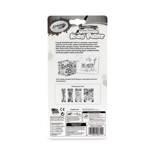 Product Details** Global Product Type Art Paints & Primers Paint Sub-Category Poster Tempera Intended Application Environment Interior Finish/Sheen Matte Color Family Multicolor Number of Colors 18 Recommended Level of Ventilation None Color(s) Assorted Color Assortment 18 Assorted Colors Volume Capacity 3 oz Packaging Type Interconnected Cups Binder/Vehicle Ingredient(s) Water-Soluble Adhesive Diluent/Solvent Ingredient(s) Water Application Method Brush,Sponge Washable/Removable Yes Product Biodegradability in Days 0 Package Includes (1) Paint Brush Compliance Standards ACMI AP Non-Toxic Certified,Conforms to ASTM D 4236 Pre-Consumer Recycled Content Percent 0% Post-Consumer Recycled Content Percent 0% Total Recycled Content Percent 0% Special Features 18 Colors Country Of Origin CN Carton Weight 5 lbs. Carton Pack Quantity 6 ST Pack Quantity 1 ST UPC 071662003142 UNSPSC 60121239 Shipping Weight & Item Dimensions Weight 0.5 lbs. Length 9.5 in Height 1.1 in Width 4.5 in