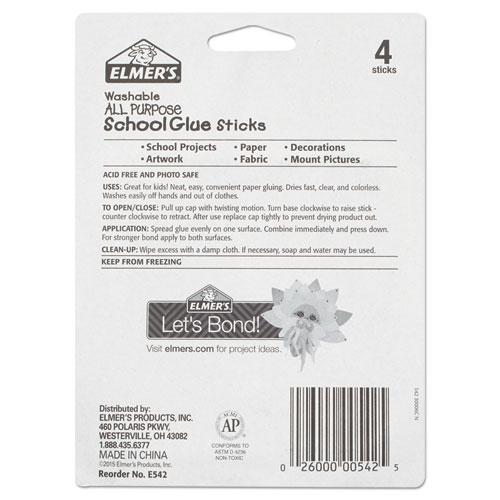 Washable School Glue Sticks, 0.24 oz, Applies and Dries Clear, 4/PackWashable School Glue Sticks, 0.24 oz, Applies and Dries Clear, 4/Pack