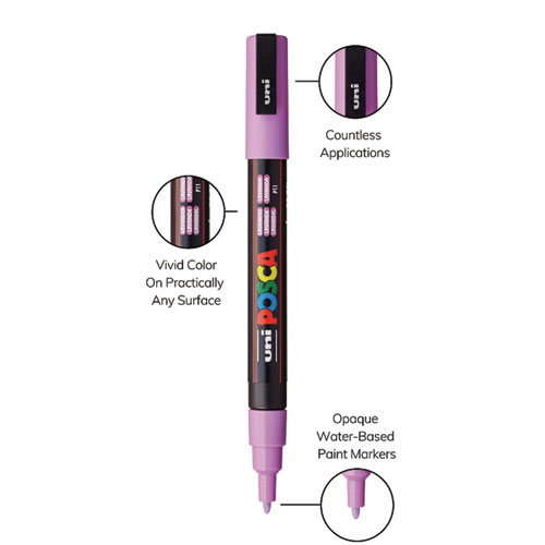 POSCA™ Water-Based Paint Markers can be used on almost any surface you can dream up: paper, glass, cardboard, wood, porcelain, metal, textiles, ceramics, plastics and so much more. Their felt tips are also versatile, allowing you to produce neat and precise lines when outlining and bold lines when filling in spaces. Water-based, alcohol- and solvent-free, opaque paint is blendable, covers surfaces well, dries quickly and can be layered once dry. Ideal for beginners and professionals alike, these markers are a fluid and fun choice for arts and crafts projects, retail window signage, automobile windshields as well as interior and exterior decor projects. As an added benefit, their tips can be rinsed with water to keep them intact, allowing you to blend without fear of ruining the color of any given marker. Non-toxic, light-fast and waterproof paint can be scraped off most nonporous surfaces, such as glass, while remaining permanent on porous surfaces, such as paper.