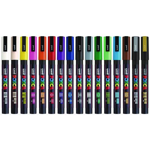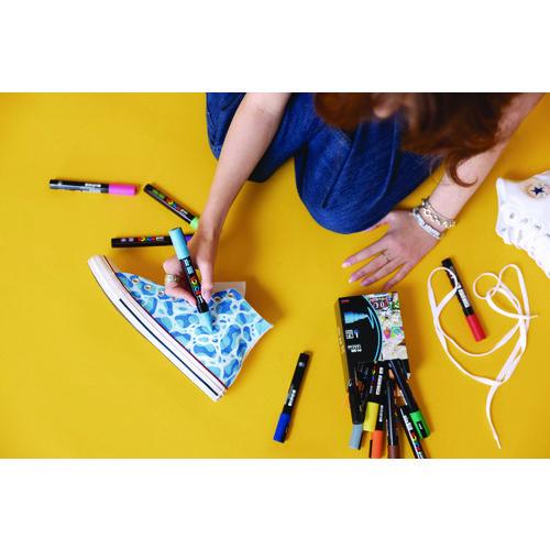 POSCA™ Water-Based Paint Markers can be used on almost any surface you can dream up: paper, glass, cardboard, wood, porcelain, metal, textiles, ceramics, plastics and so much more. Their felt tips are also versatile, allowing you to produce neat and precise lines when outlining and bold lines when filling in spaces. Water-based, alcohol- and solvent-free, opaque paint is blendable, covers surfaces well, dries quickly and can be layered once dry. Ideal for beginners and professionals alike, these markers are a fluid and fun choice for arts and crafts projects, retail window signage, automobile windshields as well as interior and exterior decor projects. As an added benefit, their tips can be rinsed with water to keep them intact, allowing you to blend without fear of ruining the color of any given marker. Non-toxic, light-fast and waterproof paint can be scraped off most nonporous surfaces, such as glass, while remaining permanent on porous surfaces, such as paper.