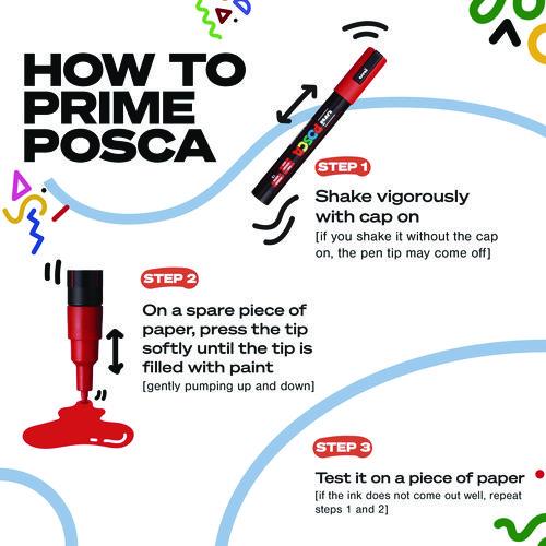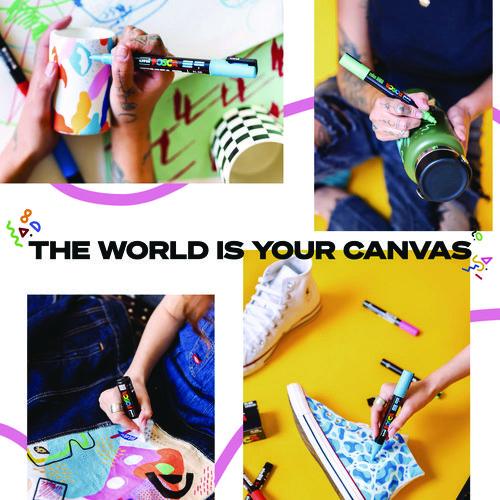 POSCA™ Water-Based Paint Markers can be used on almost any surface you can dream up: paper, glass, cardboard, wood, porcelain, metal, textiles, ceramics, plastics and so much more. Their felt tips are also versatile, allowing you to produce neat and precise lines when outlining and bold lines when filling in spaces. Water-based, alcohol- and solvent-free, opaque paint is blendable, covers surfaces well, dries quickly and can be layered once dry. Ideal for beginners and professionals alike, these markers are a fluid and fun choice for arts and crafts projects, retail window signage, automobile windshields as well as interior and exterior decor projects. As an added benefit, their tips can be rinsed with water to keep them intact, allowing you to blend without fear of ruining the color of any given marker. Non-toxic, light-fast and waterproof paint can be scraped off most nonporous surfaces, such as glass, while remaining permanent on porous surfaces, such as paper.