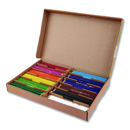 Product Details** Global Product Type Art Pencils Retractable No Eraser (Yes/No) No Color Family Multicolor HB Graphite Scale 2B Refillable No Graphite Color(s) Assorted Graphite Color Assortment Black,Blue,Brown,Green,Magenta,Orange,Red,Sky Blue,Violet,White,Yellow,Yellow-Green Pencil Barrel Color(s) Assorted Pencil Barrel Color Assortment Black,Blue,Brown,Green,Magenta,Orange,Red,Sky Blue,Violet,White,Yellow,Yellow-Green Pencil Barrel Material Wood Pencil Grip Type Smooth Round Graphite Diameter 3.3 mm Pocket Clip Indicator No Art/Drafting Pencil Grade All-Purpose/Scholastic Pre-Sharpened Woodcase (Yes/No) No Age Recommendation Ages 6 and Up Special Packaging Classpack Product Biodegradability Indicator N Product Biodegradability in Days 0 Product Compostability Indicator N Green Information Contains 100% reforested wood. Compliance Standards ACMI AP Non-Toxic Certified,Conforms to ASTM D 4236 Pre-Consumer Recycled Content Percent 0% Post-Consumer Recycled Content Percent 0% Total Recycled Content Percent 0% Special Features 240-Count Classpack®—Includes 240 colored pencils (20 of each color). Country Of Origin BR Carton Weight 4 lbs. Carton Pack Quantity 240 EA Pack Quantity 0 UPC 000000000000 UNSPSC 44121707 Shipping Weight & Item Dimensions Weight 3.437 lbs. Length 15 in Height 1.88 in Width 10 in