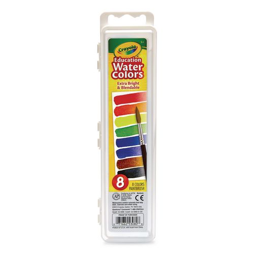 Indulge your inner Van Gogh with these Watercolor Sets from Crayola. Semi-moist, transparent Watercolor Paints flow smoothly from a quality brush and retain their clean, vibrant color throughout any watercolor technique. Use water to blend existing shades into a unique color palette that’s all your own! Watercolor Sets feature high, quality bold pigments. Makes a great set of school supplies for teachers and classrooms.