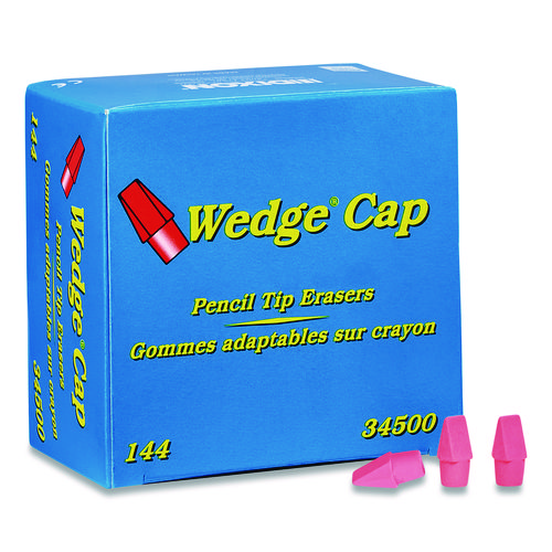Wedge Cap Erasers, For Pencil Marks, Pink, 144/Box
