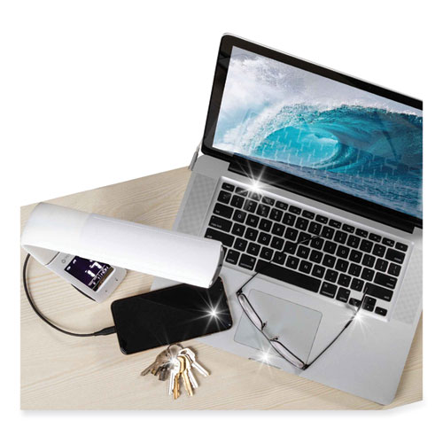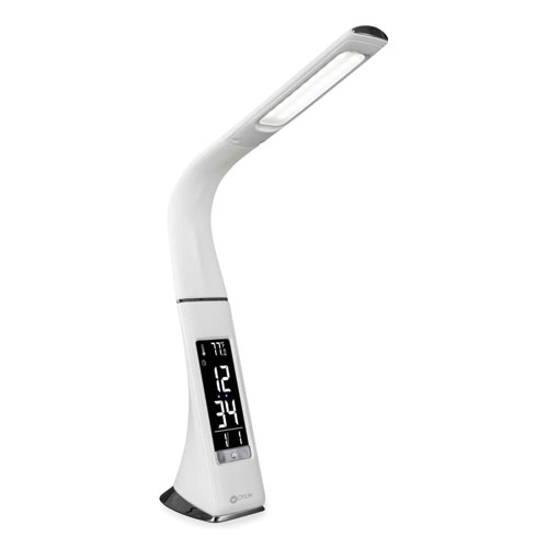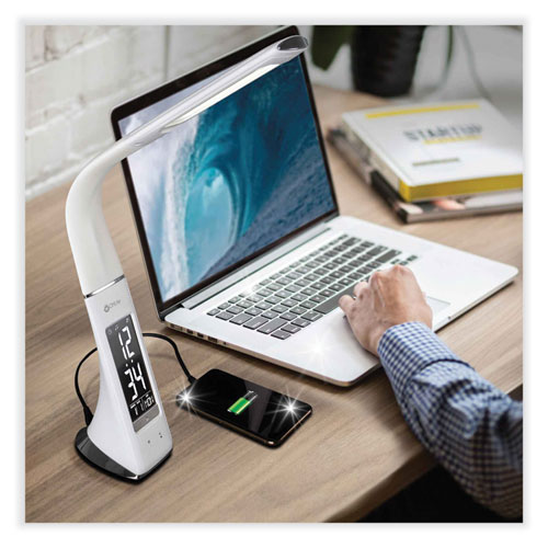 Wellness Series Sanitizing Thrive LED Desk Lamp with Clock, 10" to 18.75", WhiteWellness Series Sanitizing Thrive LED Desk Lamp with Clock, 10″ to 18.75″, White
