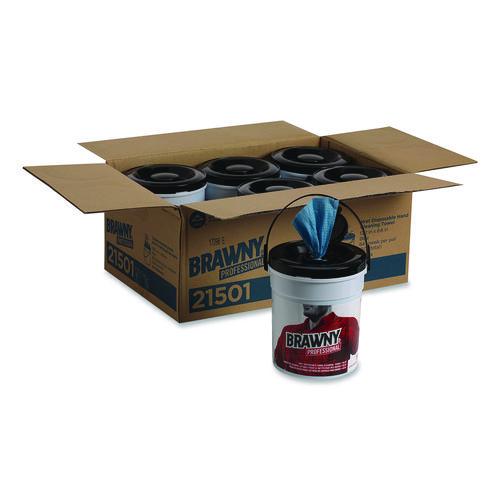Feature cloth-like softness that allows you to easily wipe and clean greasy and grimy hands on the spot. Soft, durable and strong with no gritty residue and clean, fresh scent make these a perfect clean-up solution. Portable pail with one-at-a-time dispensing provides added wiper protection, keeps wipes moist, helps reduce waste and control costs. Convenient container ensures industrial wipes are available where needed.