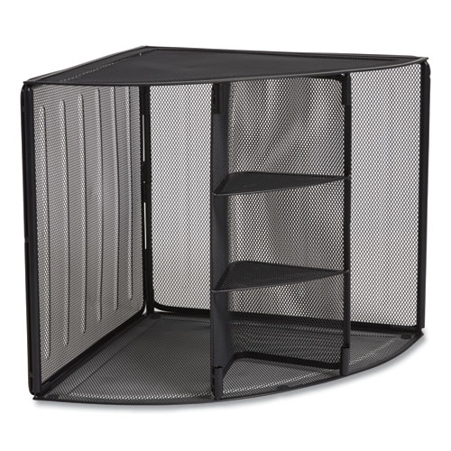 Wire Mesh Corner Organizer, Four Sections, 5.28 x 14.17 x 19.37, BlackWire Mesh Corner Organizer, Four Sections, 5.28 x 14.17 x 19.37, Black