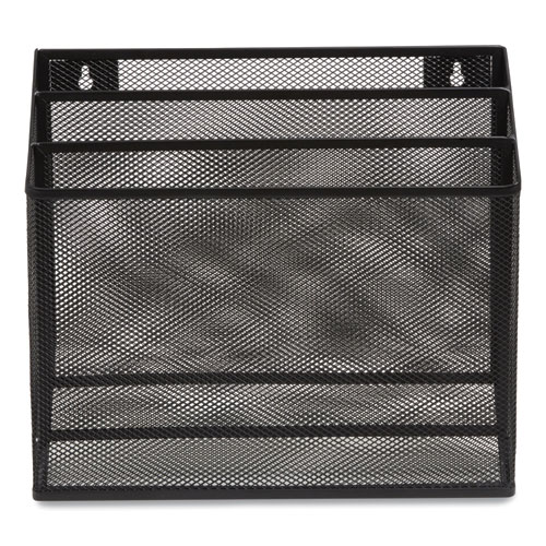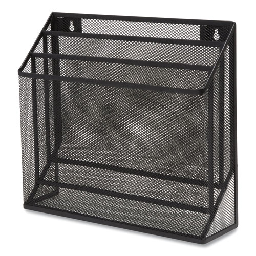 Product Details** Global Product Type Vertical & Incline Desktop Document Racks & Sorters Number of Compartments 3 For File Size Letter Load Orientation Top Color Family Black Color(s) Matte Black Material(s) Metal Mesh Width 13.78″ Depth 16.61″ Height 12.4″ Product Biodegradability in Days 0 Pre-Consumer Recycled Content Percent 0% Post-Consumer Recycled Content Percent 0% Total Recycled Content Percent 0% Special Features Enclosed Design—Versatile placement options: mount to a wall or place directly on a worksurface. Country Of Origin IN Carton Weight 11 lbs. Carton Pack Quantity 4 EA Pack Quantity 0 UPC 718103359443 UNSPSC 44111515 Shipping Weight & Item Dimensions Weight 2.285 lbs. Length 13.091 in Height 4.226 in Width 11.896 in