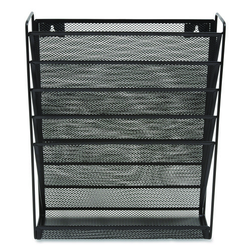 Product Details** Global Product Type Vertical & Incline Desktop Document Racks & Sorters Number of Compartments 5 For File Size Letter Load Orientation Top Color Family Black Color(s) Matte Black Material(s) Metal Mesh Width 13.38″ Depth 4.52″ Height 16.45″ Product Biodegradability in Days 0 Pre-Consumer Recycled Content Percent 0% Post-Consumer Recycled Content Percent 0% Total Recycled Content Percent 0% Special Features Enclosed Design—Versatile placement options: mount to a wall or place directly on a worksurface. Country Of Origin IN Carton Weight 16 lbs. Carton Pack Quantity 4 EA Pack Quantity 0 UPC 718103359733 UNSPSC 44111510 Shipping Weight & Item Dimensions Weight 3.652 lbs. Length 16.491 in Height 4.491 in Width 13.296 in