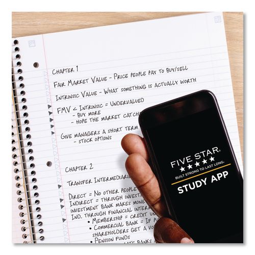 Product Details** Global Product Type General Purpose Notebooks Pocket Sized No Book-Binding Type Spiral Coil Color Family Multicolor Number of Subjects/Sections 3 Sheet Size (Bound-Side First) 11 x 8.5 Sheet Rule/Format Type Medium/College Rule Book-Binding Edge Side Cover Color Randomly Assorted Cover Color Assortment Amethyst Purple,Black,Fire Red,Forest Green,Pacific Blue,White Book-Spine Length 11″ Book Width 8.5″ Front-Cover Material Polyethylene Back-Cover Material 30-pt Paperboard Number of Section Dividers 2 Sheets per Book/Journal 150 Sheet Color White Sheet Ruling Size 9/32″ Note-Rule Lines per Sheet 33 Sheet-Ruling Color Blue Hole-Punch Details Side: 3-Hole Sheet Perforation Details Neat Sheet® Sheet Basis Weight (lb) 15 lb Bond Number of Pockets 4 Pocket Details Loose-Sheet Pockets Dated No Product Biodegradability Indicator N Product Biodegradability in Days 0 Product Compostability Indicator N Pre-Consumer Recycled Content Percent 0% Post-Consumer Recycled Content Percent 0% Total Recycled Content Percent 0% Disclaimer Statement Cover color is randomly selected when shipped—item may not ship as shown. Guarantee is valid for one year from purchase or delivery date, whichever is longer. Does not cover misuse. Go to Five Star® website for details. Country Of Origin US Carton Weight 9 lbs. Carton Pack Quantity 6 EA Pack Quantity 0 UPC 043100062103 UNSPSC 14111514 Shipping Weight & Item Dimensions Weight 1.498 lbs. Length 11 in Height 0.7 in Width 9.8 in