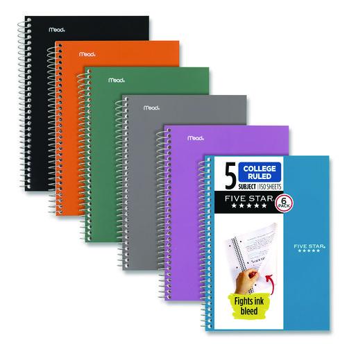 Wirebound Notebook, 5-Subject, Medium/College Rule, Assorted Cover Colors, (150) 9.5 x 6.63 Sheets, 6/PackWirebound Notebook, 5-Subject, Medium/College Rule, Assorted Cover Colors, (150) 9.5 x 6.63 Sheets, 6/Pack