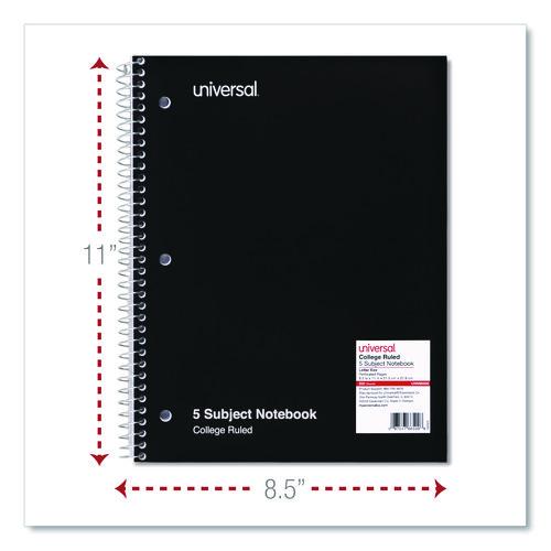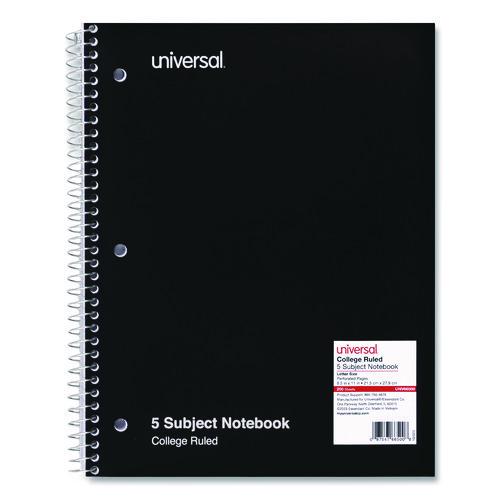Product Details** Global Product Type General Purpose Notebooks Pocket Sized No Book-Binding Type Spiral Coil Color Family Black Number of Subjects/Sections 5 Sheet Size (Bound-Side First) 11 x 8.5 Sheet Rule/Format Type Medium/College Rule Book-Binding Edge Side Cover Color Black Book-Spine Length 11″ Book Width 8.5″ Front-Cover Material Paper Back-Cover Material Grayboard Number of Section Dividers 4 Sheets per Book/Journal 200 Sheet Color White Sheet Ruling Size 9/32″ Note-Rule Lines per Sheet 33 Sheet-Ruling Color Blue Hole-Punch Details Side: 3-Hole Sheet Perforation Details Micro-Perforation Sheet Basis Weight (lb) 15 lb Bond Dated No Product Biodegradability Indicator N Product Biodegradability in Days 0 Product Compostability Indicator N Pre-Consumer Recycled Content Percent 0% Post-Consumer Recycled Content Percent 0% Total Recycled Content Percent 0% Country Of Origin VN Carton Weight 41 lbs. Carton Pack Quantity 24 EA Pack Quantity 0 UPC 087547665008 UNSPSC 14111514 Shipping Weight & Item Dimensions Weight 1.71 lbs. Length 11 in Height 0.69 in Width 8.5 in Warranty Manufacturer’s limited one-year warranty.