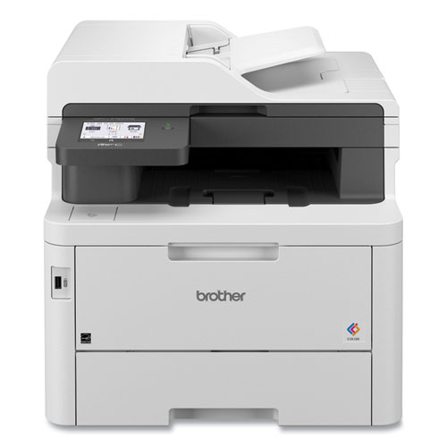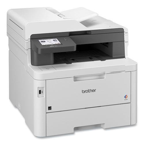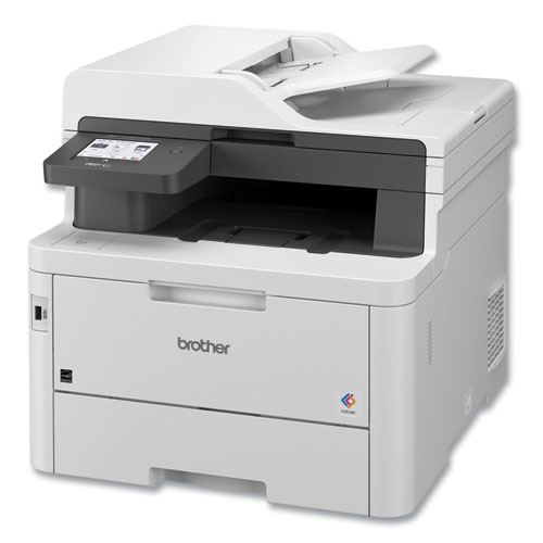 The Brother MFC-L3780CDW digital color all-in-one printer with copy, scan and fax functionalities is engineered to offer small business leaders an extraordinary level of efficiency with astounding print speeds and plenty of productivity-propelling features. Save time with print speeds up to 31 pages per minute and scan speeds up to 29/22 ipm (black/color). Versatile paper handling options include a 50-sheet auto document paper feeder for multi-page copy, scan and fax and single pass duplex copying and scanning. A 250-sheet capacity paper tray adjusts for letter or legal sizes and minimizes the frequency of paper refills while the 30-sheet capacity paper tray is ideal for envelopes, letterhead and alternative media. Tackle high-volume printing with the optional 250-sheet lower tray that will increase total paper tray capacity to 500 sheets. Assign up to 48 timesaving shortcuts to popular workflows through the intuitive 3.5″ touchscreen. This easy-to-use feature also enables you to directly print-from and scan-to a variety of Cloud based apps, manage toner levels and so much more. Connect to virtually any device with the built-in dual band wireless, Wi-Fi Direct®, Gigabit Ethernet or connect locally to a single computer via USB interface. Advanced security features include an integrated NFC card reader for badge authentication to help safeguard your information while printing. This all-in-one powerhouse is a first-class addition to any small, do-it-all workspace.