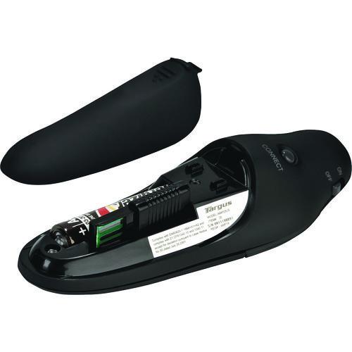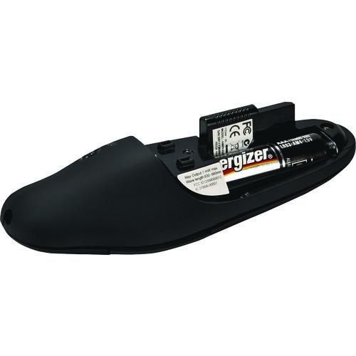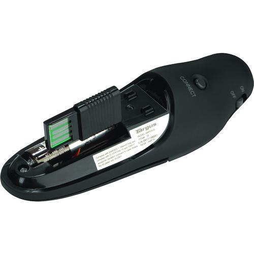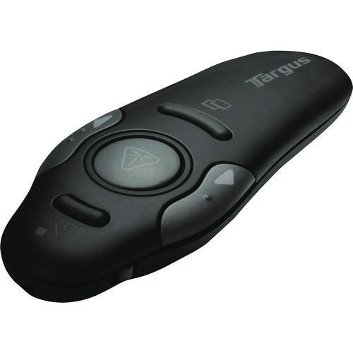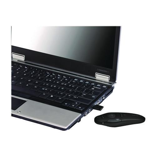 Wireless presenter with laser pointer makes it easy to control your presentation from up to 50 ft away. The ergonomic design with soft touch surface makes it easy to hold the device in your hand and navigate through the buttons comfortably. The built-in laser pointer allows you to highlight key points while the other keys allow you to page up, page down, exit/resume presentation mode, and darken screen. The preset RF connection enables true plug-and-play capability; no driver is required.