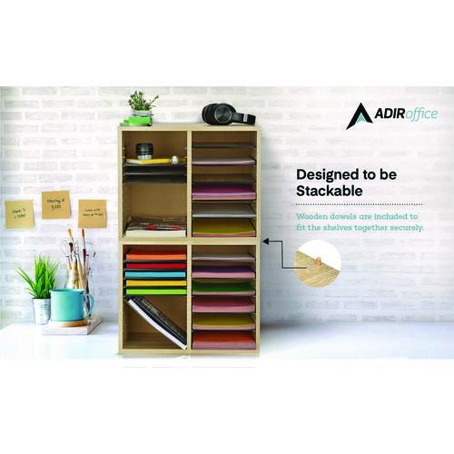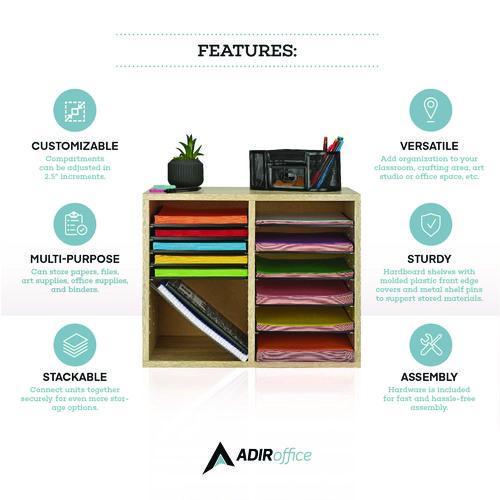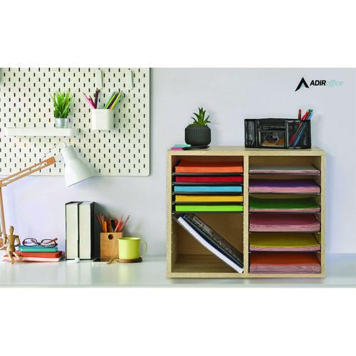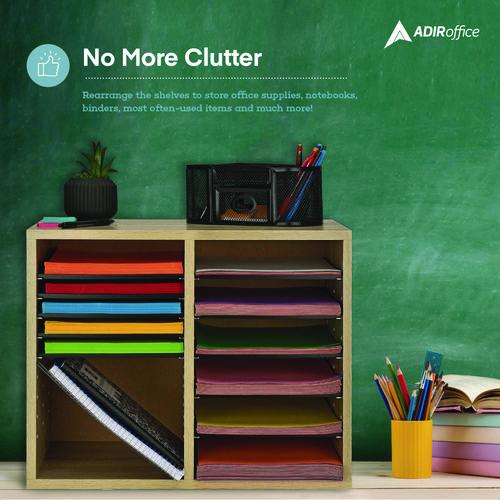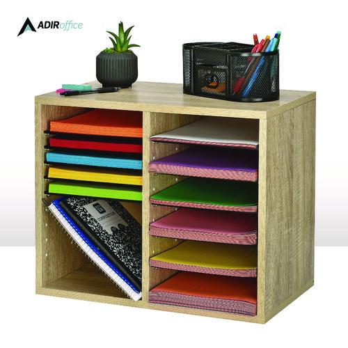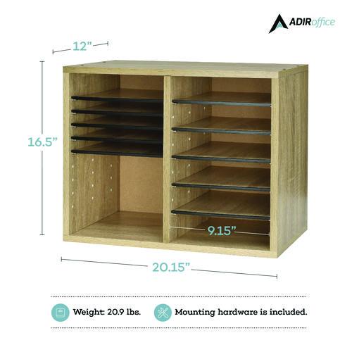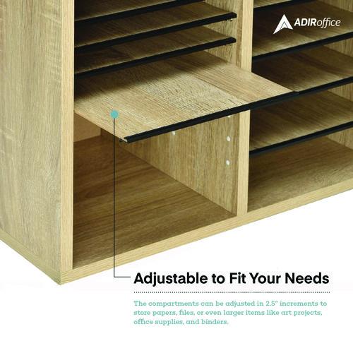 Product Details** Global Product Type Multipurpose Literature Sorters Number of Compartments 12 Material(s) Medium Density Fiberboard Color Family Oak Literature Sorter Type Open Front Compartment Size Letter Color(s) Medium Oak Width 20″ Depth 11.8″ Height 16.3″ Product Biodegradability Indicator N Product Biodegradability in Days 0 Product Compostability Indicator N Pre-Consumer Recycled Content Percent 0% Post-Consumer Recycled Content Percent 0% Total Recycled Content Percent 0% Country Of Origin CN Carton Weight 22 lbs. Carton Pack Quantity 1 EA Pack Quantity 0 UPC 840309410540 UNSPSC 44102502 Shipping Weight & Item Dimensions Weight 22 lbs. Length 23 in Height 6 in Width 15 in Warranty Manufacturer’s one-year warranty.