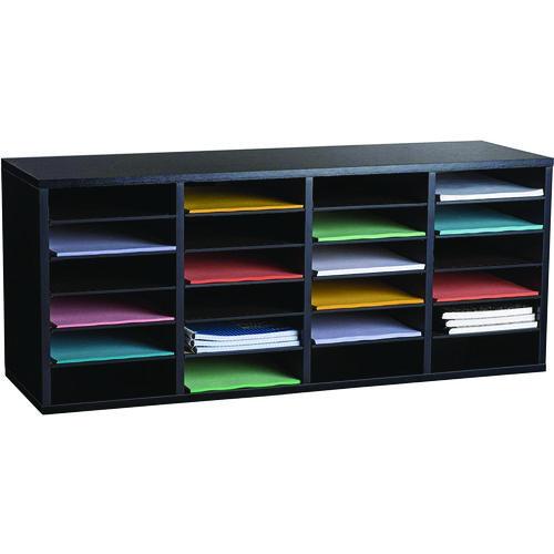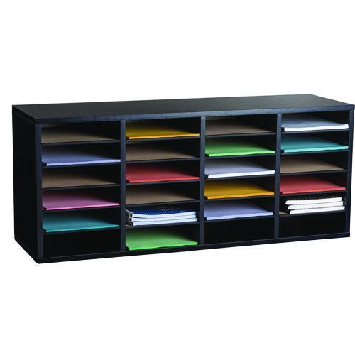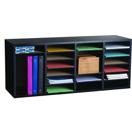 Product Details** Global Product Type Multipurpose Literature Sorters Number of Compartments 24 Material(s) Medium Density Fiberboard Color Family Black Literature Sorter Type Open Front Compartment Size Letter Color(s) Black Width 39.3″ Depth 11.8″ Height 16.3″ Product Biodegradability Indicator N Product Biodegradability in Days 0 Product Compostability Indicator N Pre-Consumer Recycled Content Percent 0% Post-Consumer Recycled Content Percent 0% Total Recycled Content Percent 0% Country Of Origin CN Carton Weight 36 lbs. Carton Pack Quantity 1 EA Pack Quantity 0 UPC 840309410595 UNSPSC 44102502 Shipping Weight & Item Dimensions Weight 36 lbs. Length 42 in Height 4 in Width 14 in Warranty Manufacturer’s one-year warranty.