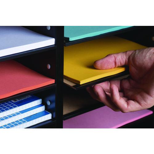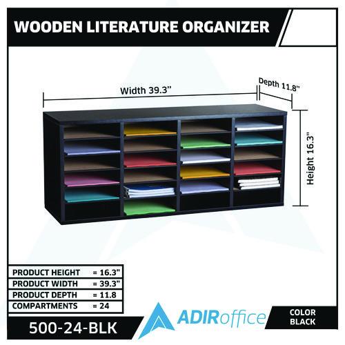 The AdirOffice Wood Adjustable 24 Compartment Literature Organizer is just the ticket for organizing and keeping track of sales brochures, product literature and other office materials supporting your company’s business. These attractive storage units make life easier for your sales support staff members, especially if they have other responsibilities as well. Ruggedly constructed, this accessory is made out of durable, medium-density fiberboard construction to supply long-lasting strength for years to come. The letter size compartments hold up to 15 lbs and adjust in 2.5 in increments to meet all of your needs in the home, office or classroom. Tasks are made easier because these organizers provide options including color coding and labeling capabilities, enabling quick selection of material to be distributed. It features an 11.8 in depth and removable shelves to accommodate items of various different sizes.