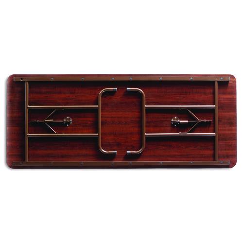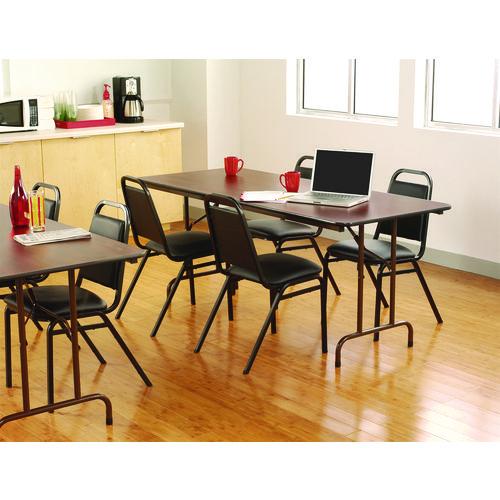 Product Details** Global Product Type Multiuse Folding & Nesting Tables Top Shape Rectangular Color Family Mahogany Maximum Weight Capacity Supports up to 1,200 lbs evenly distributed Overall Width 48″ Height (Max) 29″ Top Color Mahogany Top Thickness 0.63″ Overall Depth 23.78″ Top Material Melamine Base/Leg Material Steel Base Type 1″ Diameter Legs Folded Height 2.5″ Edge Detail Profile Black Vinyl Edge Product Biodegradability in Days 0 Compliance Standards Meets or Exceeds ANSI/BIFMA Standards Pre-Consumer Recycled Content Percent 0% Post-Consumer Recycled Content Percent 0% Total Recycled Content Percent 0% Country Of Origin CN Carton Weight 40 lbs. Carton Pack Quantity 1 EA Pack Quantity 0 UPC 042167200022 UNSPSC 56101706 Shipping Weight & Item Dimensions Weight 39.16 lbs. Length 51.77 in Height 3.27 in Width 27.17 in Warranty Manufacturer’s limited five-year warranty.