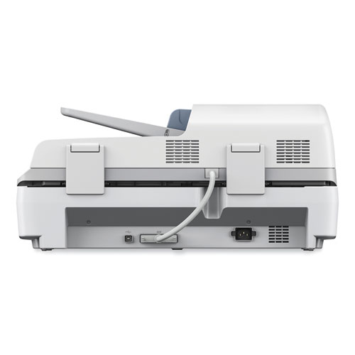 Capture large, two-sided documents in a single scan through the ADF or the scanner bed. Achieve remarkable results, thanks to the four-line CCD sensor (RGB and black) that provides vivid color and crisp, sharp text. Boost productivity with one-pass two-sided scanning at speeds of 40 ppm/80 ipm. Work more efficiently, thanks to the built-in 200-sheet automatic document feeder, plus auto duplex scanning. Ultrasonic double-feed detector automatically stops the scanning process if two pages feed together. Use the optional networking module and included Document Capture Pro software to scan to any PC on the local network. Scan directly to popular cloud services, like SharePoint®, Evernote®, Google Docs and more. Scan and save documents to searchable PDF files. Includes powerful productivity software—Epson® Scan, Document Capture Pro (Windows® only) and ABBYY® FineReader® Sprint OCR. One-touch scanning creates up to 30 user-programmable jobs.