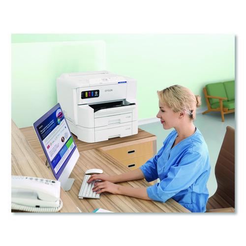 The WorkForce® Pro EP-C7000 color printer is powered by PrecisionCore® Heat-Free technology for reliable performance and low power consumption—all at an affordable price. It speeds through professional-quality prints at 25/24 ISO ppm (black/color) with fast first page out and zero warmup time. This compact printer is designed to maximize productivity with a recommended monthly print volume of 1,500 to 7,000 pages and high-yield replacement cartridges that can deliver enough ink to print up to 11,500 ISO pages black/8,000 ISO color. Plus, DURABrite® Pro fast-drying, water-resistant pigment ink produces vivid color and crisp black text for high-quality printing.
