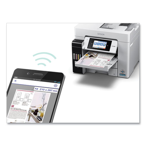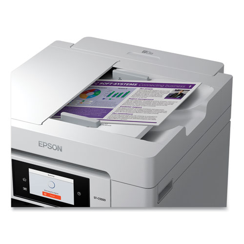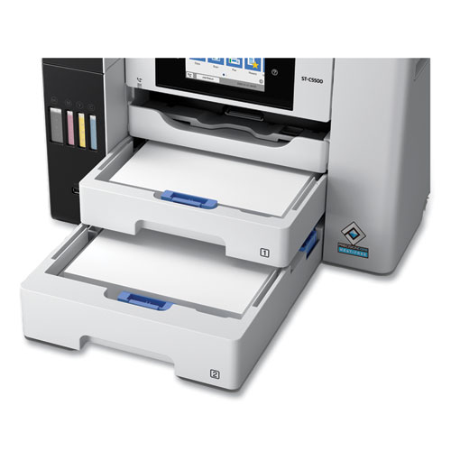 Introducing Epson’s innovative WorkForce® Pro ST-C5500 Supertank color MFP—welcome to the next era of office printing. Designed for enhanced productivity, this MFP includes up to two years of ink in the box, enough to print up to 12,000 pages black/8,800 color. With print speeds of 25 ISO ppm (black/color) and a recommended monthly page volume of 3,300 pages, we’ve engineered this MFP to work as hard as you do. Powered by Epson’s advanced PrecisionCore Heat-Free® technology, the ST-C5500 provides the lowest power consumption in its class. Plus, you’ll save up to 80 percent with replacement ink bottles; that’s about two cents per color ISO page compared to 14 cents vs. color laser toner cartridges.