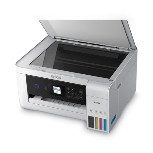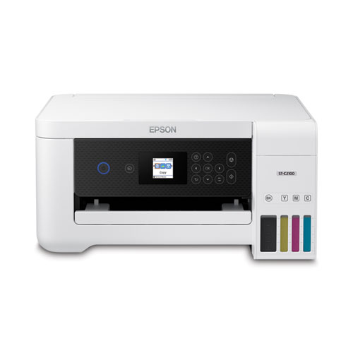 The WorkForce ST-C2100 Supertank Color MFP makes it easy for small offices to make a big impact. Offering remarkable productivity, it features cutting-edge Supertank printing technology with easy-to-fill, supersized ink tanks with a small compact footprint. You won’t have to worry about running out of ink at a critical moment since it includes up to two years of ink in the box—enough to print up to 6,500 pages black and 5,200 pages color. Your CFO will appreciate the fact you save up to 90 percent with low-cost replacement ink bottles vs. ink cartridges, equivalent to about 90 individual ink cartridges. The ST-C2100 also offers convenient wireless printing from tablets and smartphones, along with Wi-Fi Direct® and auto two-sided printing. Plus, the WorkForce ST-C2100 is compatible with the Epson Smart Panel® app, a powerful tool that makes it easy to set up, monitor, print, scan, order supplies and more right from your hand-held device.