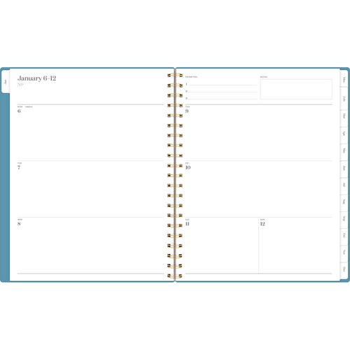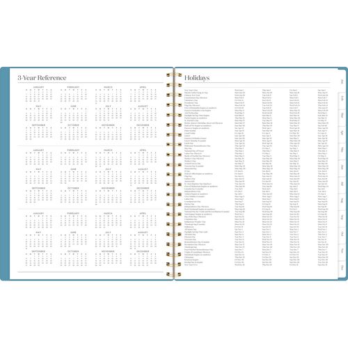 Product Details** Global Product Type Appointment Book/Personal Organizers Dated Yes Academic Year No Calendar Format Weekly,Monthly Edition Year 2025 Calendar Term 12-Month (Jan to Dec) Binding Type Wire-O Color Family Blue Refillable No Calendar Spread Format One Week per Two-Page Spread,One Month per Two-Page Spread Julian Dates No Size (Bound-Side First) 11 x 9.38 Binding Details Twin-Wire: Flexible Cover Cover Theme Geometric Artwork Cover Color(s) Blue/Gold Cover Material(s) Poly Binding Color(s) Gold Appointment Ruling Open Scheduling Separate Sections Four-Year Holiday List,Dot Ruled Notes Pages,Standard Ruled Notes Pages,Three-Year Reference Calendar Sheet Color(s) White Pocket Details (1) Two-Sided Storage Pocket Reversible No Seasonal Availability Yes Age Recommendation Ages 12 and Up Product Biodegradability Indicator N Product Biodegradability in Days 0 Product Compostability Indicator N Package Includes (1) Sheet of Gilded-Gold Labeling Stickers Pre-Consumer Recycled Content Percent 0% Post-Consumer Recycled Content Percent 0% Total Recycled Content Percent 0% Country Of Origin VN Carton Weight 16 lbs. Carton Pack Quantity 12 EA Pack Quantity 0 UPC 038576421424 UNSPSC 44112004 Shipping Weight & Item Dimensions Weight 1.292 lbs. Length 0.688 in Height 11 in Width 9.375 in