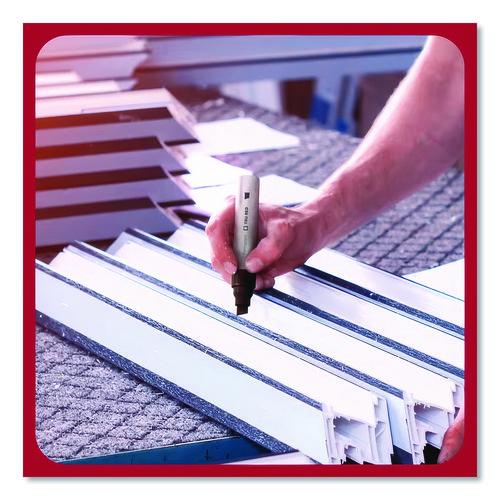 Conquer your largest projects with extra-large tank-style markers. Depending on how you wish to express yourself, the extra-broad chisel tip lets you lay down fine and thin or bold and thick lines, simply by varying your hand position while marking. To help you quickly differentiate between these XL markers, each durable aluminum barrel features a tip type icon printed along its side along with an ink-color-coordinated tip taper and cap. An oversized ink reservoir provides a 200-meter life cycle, ensuring long-lasting, reliable performance. Fast-drying, water-resistant ink marks on nearly any surface and dries in ten seconds or less, minimizing the potential for smudges and smears.