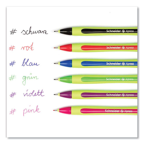 Product Details** Global Product Type Porous Point Pens Pen Style Stick Pen Tip Type Needle Pen Point Size Type Fine Color Family Multicolor Erasable Ink No Refillable No Pen Sub-Brand & Product Family Xpress Fineliner Pen Type Porous Point Pen Pen Point Size 0.8 mm Pen Ink Color(s) Assorted Pen Ink Color(s) Assortment Black: Blue: Green,Pink,Red,Violet Pen Barrel Color(s) Assorted Pen Barrel Color(s) Assortment Light Green/Black: Light Green/Blue: Light Green/Green,Light Green/Pink,Light Green/Red,Light Green/Violet Pen Cap Color(s) Assorted Pen Cap Color(s) Assortment Black: Blue: Green,Pink,Red,Violet Permanent/Washable Ink Permanent Archival-Quality Ink Yes Airplane-Safe Ink Yes Low-Viscosity Ink No Pen Grip Type Ergonomic,Rubberized Visible Ink Supply No Pocket Clip Indicator Yes Product Biodegradability Indicator N Product Biodegradability in Days 0 Product Compostability Indicator N Pre-Consumer Recycled Content Percent 0% Post-Consumer Recycled Content Percent 0% Total Recycled Content Percent 0% Country Of Origin DE Carton Weight 4 lbs. Carton Pack Quantity 20 PK Pack Quantity 6 EA UPC 194919163069 UNSPSC 44121700 Shipping Weight & Item Dimensions Weight 0.19 lbs. Length 5.866 in Height 0.944 in Width 2.637 in