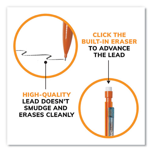 • Always ready and never need sharpening—to advance the lead, simply click the built-in eraser.