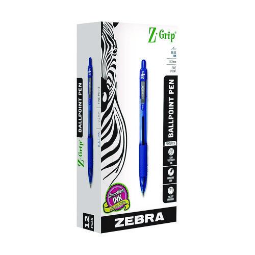 Product Details** Global Product Type Ballpoint Pens Pen Style Retractable Pen Tip Type Conical Pen Point Size Type Medium Color Family Blue Erasable Ink No Refillable No Pen Sub-Brand & Product Family Z-Grip® Pen Type Ballpoint Pen Pen Point Size 0.7 mm Pen Ink Color(s) Blue Pen Barrel Color(s) Translucent Blue/Blue Airplane-Safe Ink Yes Low-Viscosity Ink No Pen Grip Type Soft Rubber Visible Ink Supply Yes Pocket Clip Indicator Yes Product Biodegradability Indicator N Product Biodegradability in Days 0 Product Compostability Indicator N Pre-Consumer Recycled Content Percent 0% Post-Consumer Recycled Content Percent 0% Total Recycled Content Percent 0% Country Of Origin CN Carton Weight 33 lbs. Carton Pack Quantity 96 DZ Pack Quantity 0 UPC 000000000000 UNSPSC 44121704 Shipping Weight & Item Dimensions Weight 0.31 lbs. Length 5.75 in Height 1.21 in Width 2.71 in