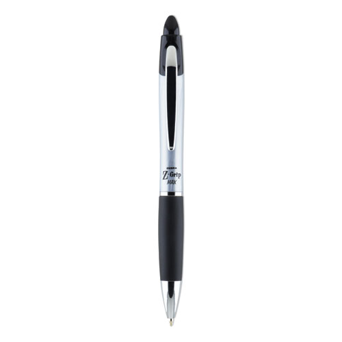 Product Details** Global Product Type Ballpoint Pens Pen Style Retractable Pen Tip Type Conical Pen Point Size Type Medium Color Family Black Erasable Ink No Refillable No Pen Sub-Brand & Product Family Z-Grip® MAX Pen Type Ballpoint Pen Pen Point Size 1 mm Pen Ink Color(s) Black Pen Barrel Color(s) Silver/Black Airplane-Safe Ink Yes Low-Viscosity Ink No Pen Grip Type Soft Rubber Visible Ink Supply No Pocket Clip Indicator Yes Product Biodegradability Indicator N Product Biodegradability in Days 0 Product Compostability Indicator N Pre-Consumer Recycled Content Percent 0% Post-Consumer Recycled Content Percent 0% Total Recycled Content Percent 0% Country Of Origin CN Carton Weight 39 lbs. Carton Pack Quantity 96 DZ Pack Quantity 0 UPC 045888224100 UNSPSC 44121704 Shipping Weight & Item Dimensions Weight 0.347 lbs. Length 7.5 in Height 1.5 in Width 2.75 in